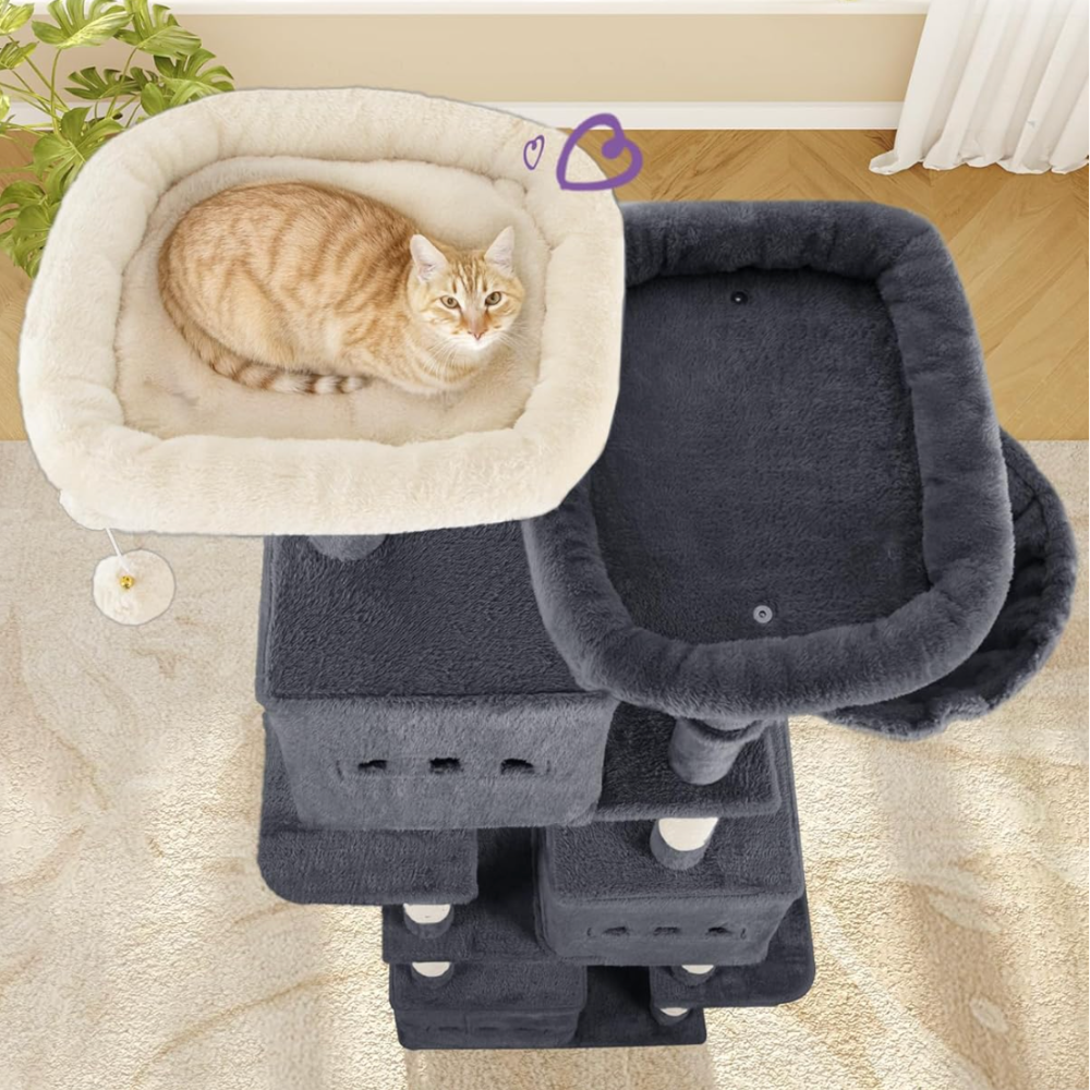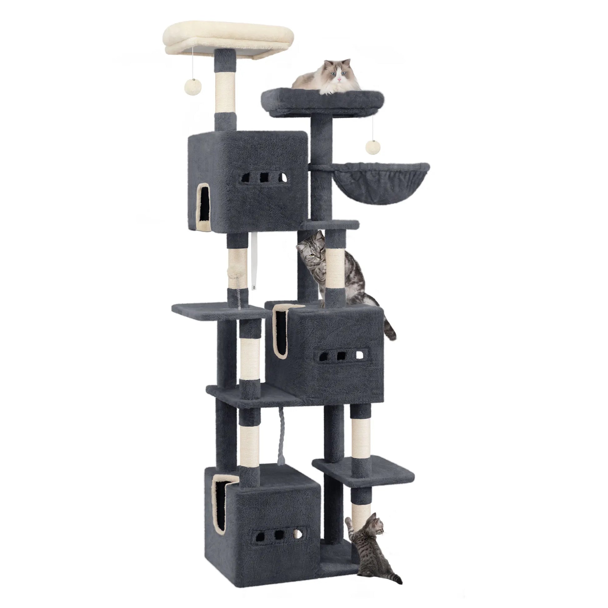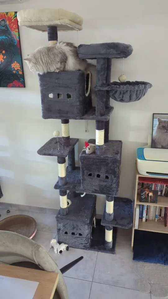 Plusieurs niveaux et espaces fermés permettent à plusieurs chats d’y accéder, dans la limite des charges indiquées sur la notice.