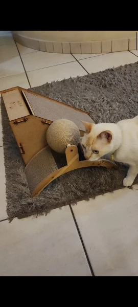 Ce griffoir en arc propose une surface texturée et une boule en sisal qui peut attirer l’attention selon les habitudes du chat. La structure en bois crée un petit passage où il peut se glisser ou se poser.