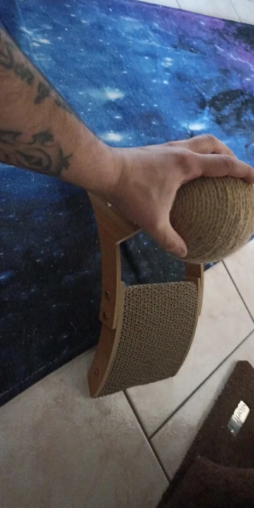 L’arc en carton ondulé offre une zone qui peut être appréciée selon ses habitudes pour gratter ou se frotter, tandis que la boule en sisal peut offrir une interaction légère.